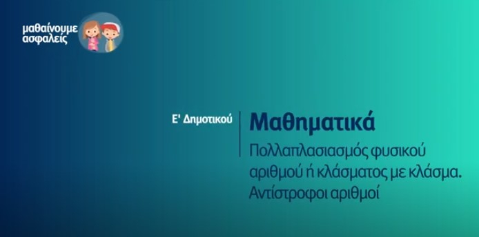 Μαθαίνουμε ασφαλείς: E' Δημοτικού - Μαθηματικά - Πολλαπλασιασμός φυσικού αριθμού ή κλάσματος με κλάσμα
