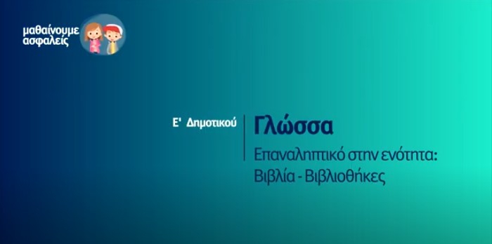 Μαθαίνουμε ασφαλείς: E' Δημοτικού - Γλώσσα - Eπαναληπτικό στην ενότητα: Βιβλία - Βιβλιοθήκες