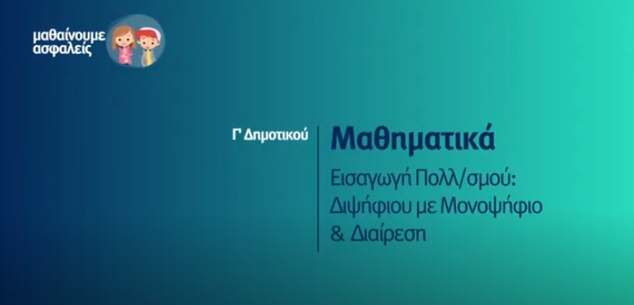 Μαθαίνουμε ασφαλείς: Γ' Δημοτικού - Μαθηματικά - Εισαγωγή Πολλαπλασιασμού: Διψήφιο με μονοψήφιο & διαίρεση