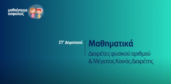 Μαθαίνουμε ασφαλείς: ΣΤ' Δημοτικού - Μαθηματικά - Διαιρέτες φυσικού αριθμού & Μέγιστος Κοινός Διαιρέτης